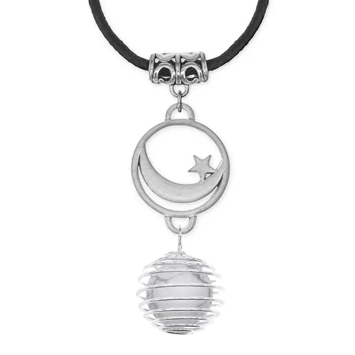 Кулон-амулет ручной работы из натурального камня кахолонг в виде полумесяца со звездой.