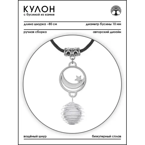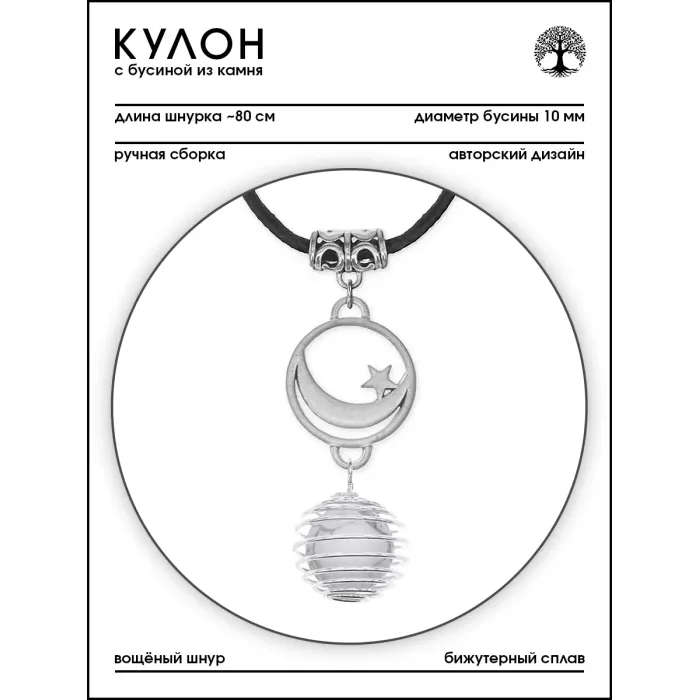 Размеры и комплектация: Диаметр бусины из камня 10 мм. В комплекте вощёный шнурок длиной ~80 см. Упаковка — прозрачный пакет.