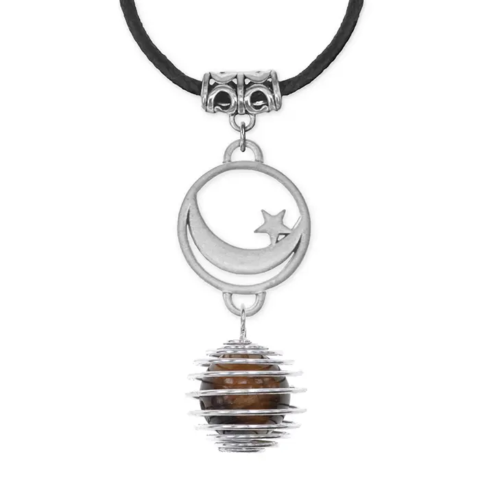 Амулет-кулон в виде полумесяца со звездой из бижутерного сплава с натуральным камнем.