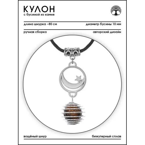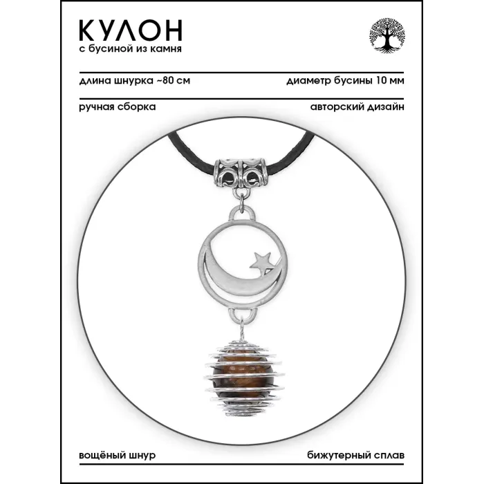 Амулет Полумесяц со звездой с нат.камнем Тигровый глаз MKA-4011-16