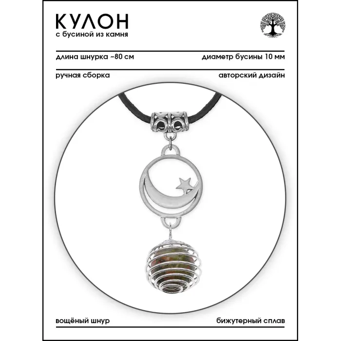 - Изготовлен из бижутерного сплава с покрытием под серебро и натурального камня Унакит.