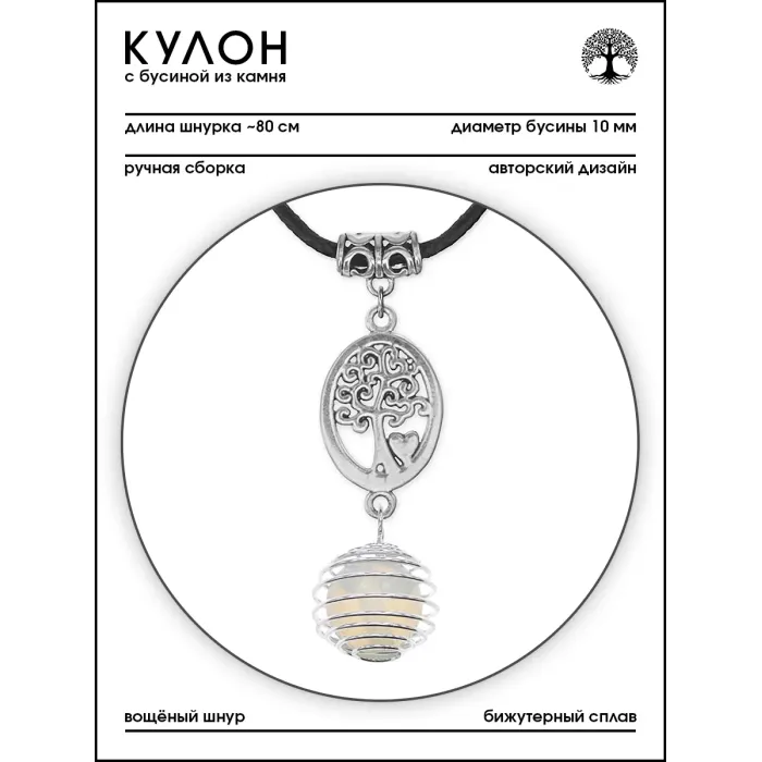 Амулет Дерево жизни с синт.камнем Лунный камень MKA-4012-07