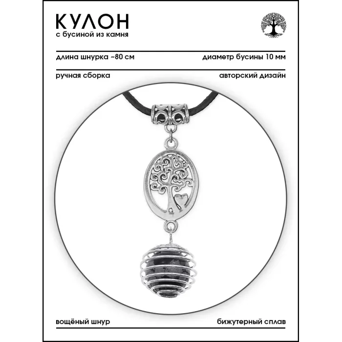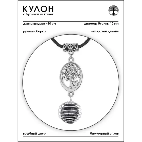 Размеры и комплектация: Диаметр бусины 10 мм, в комплекте вощёный шнурок длиной около 80 см, упаковка — прозрачный пакет.