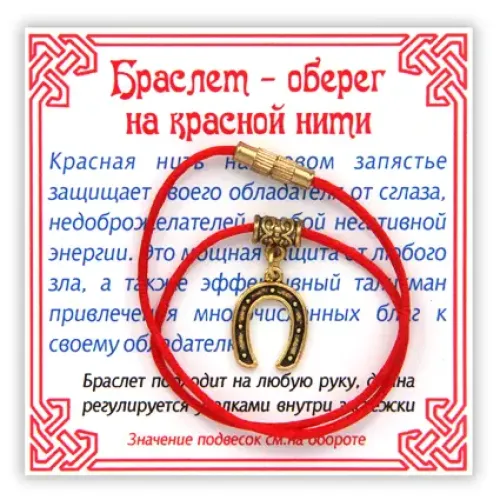 Браслет на красной нити Подкова — это не просто украшение, а мощный оберег, который защищает от сглаза и негативных влияний. Изготовленный из качественной красной шелковой нити, он оснащен закручивающимся замком и подвеской-талисманом. Этот браслет также символизирует удачу и благополучие. Упакован в пластиковый пакет с вырубкой под еврокрючок, что позволяет удобно разместить его на торговом оборудовании. XXI век приносит новые технологии: подробное описание доступно по QR-коду на упаковке для быстрого доступа к информации о товаре. Браслет станет надежным защитником и спутником в повседневной жизни.