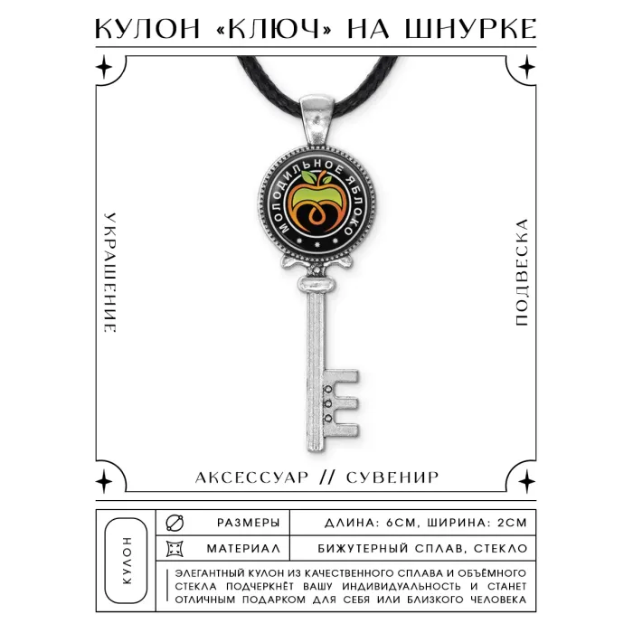 Кулон «Ключ Молодильное яблоко» — это уникальный амулет, который сочетает в себе красоту и символику. Этот кулон выполнен из бижутерного сплава с покрытием под серебро, что придаёт ему элегантный вид и долговечность. Размер изделия составляет 60х20 мм, а диаметр изображения — 18 мм, что делает его заметным аксессуаром. Изображение защищено выпуклой стеклянной линзой, обеспечивая дополнительную защиту и яркость цветов. В комплект входит шнурок с застёжкой для удобства ношения. Товар упакован в прозрачный пакет, что делает его отличным вариантом для подарка или личного использования.