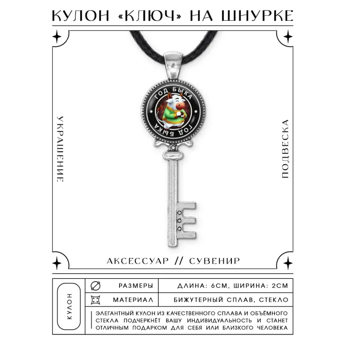 Сувенирный кулон-ключ с символикой года Быка по восточному гороскопу.