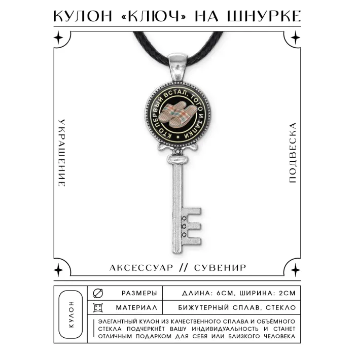 Кулон Ключ Кто первый встал, того и тапки ALKK-0116