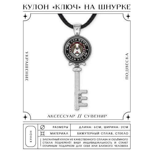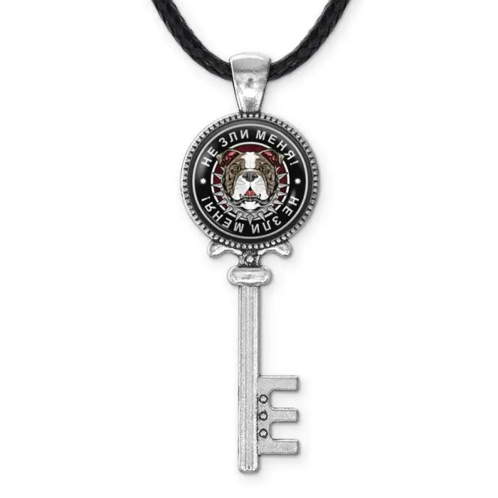 Кулон «Ключ Не зли меня» из бижутерного сплава с изображением под выпуклой стеклянной линзой.