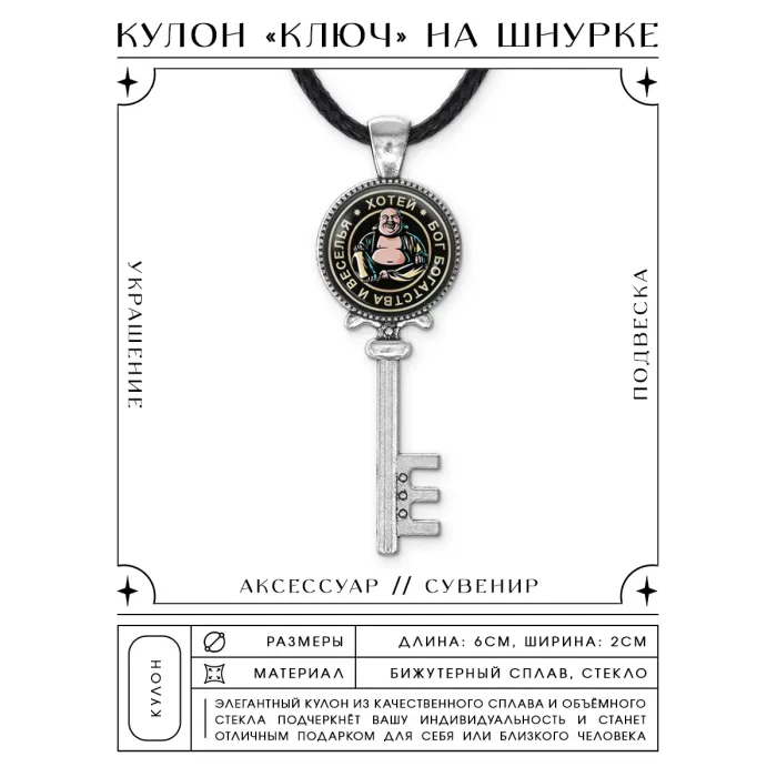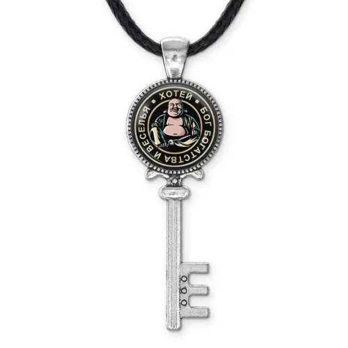 Кулон-ключ с изображением Хотея, выполненный из бижутерного сплава с серебристым покрытием. Изображение защищено выпуклой стеклянной линзой.