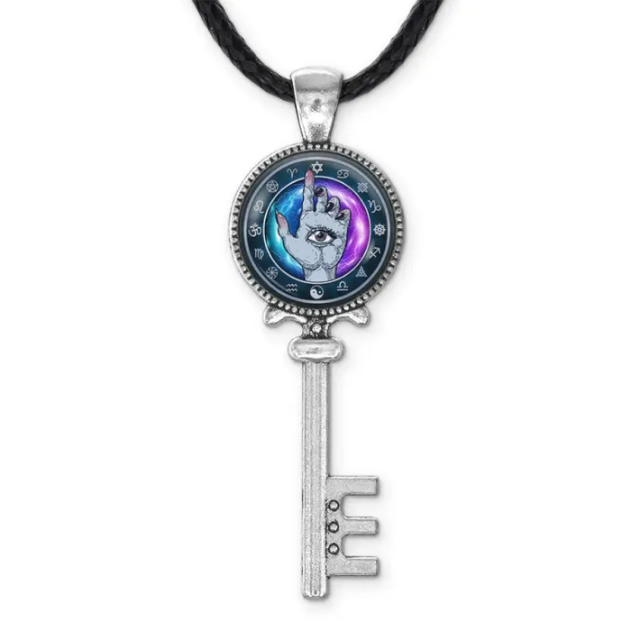 Кулон-ключ в виде руки с глазом, выполненный из бижутерного сплава.