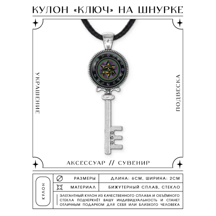 Размеры и комплектация: Размер кулона: 60х20 мм, диаметр изображения: 18 мм. В комплекте шнурок с застёжкой. Упаковка — прозрачный пакет.