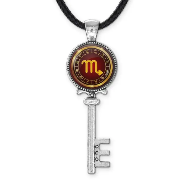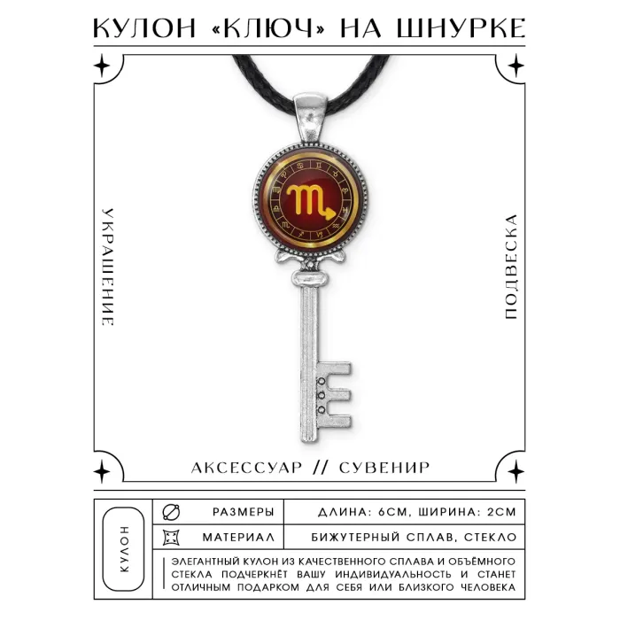 Кулон-амулет в виде ключа со знаком зодиака Скорпион, выполненный из бижутерного сплава.