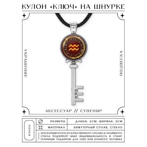 Кулон-амулет в виде ключа со знаком зодиака Водолей.