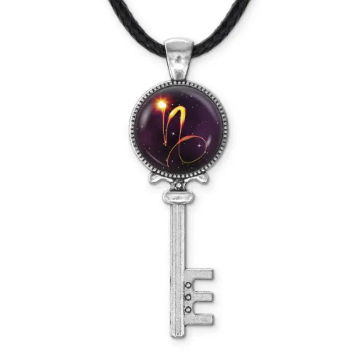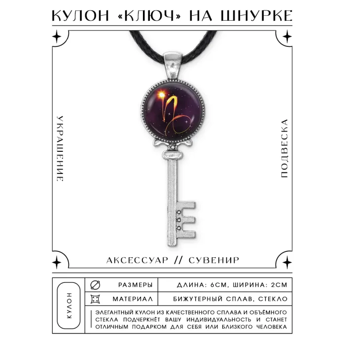 Кулон-амулет в виде ключа со знаком зодиака Козерог, выполненный из бижутерного сплава.