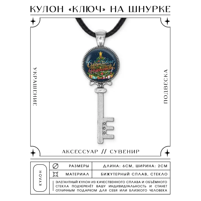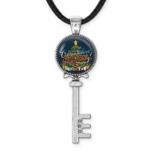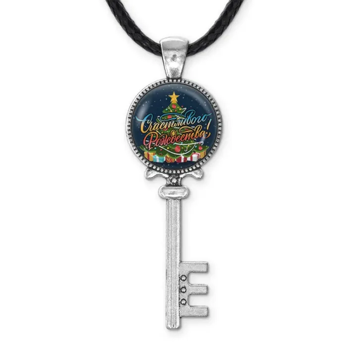 Кулон «Ключ Счастливого Рождества» из бижутерного сплава с покрытием под серебро. Изображение защищено выпуклой стеклянной линзой.