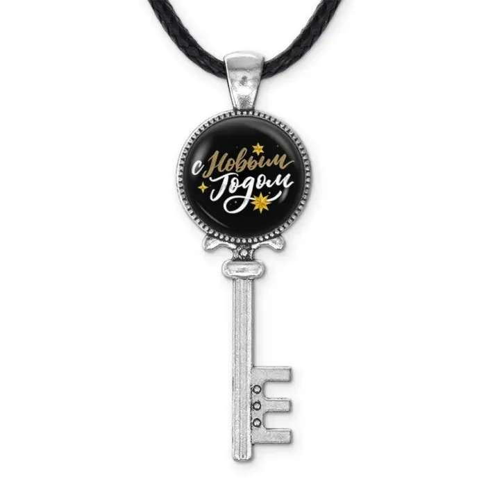 Кулон «Ключ С Новым годом» из бижутерного сплава с изображением под выпуклой стеклянной линзой.