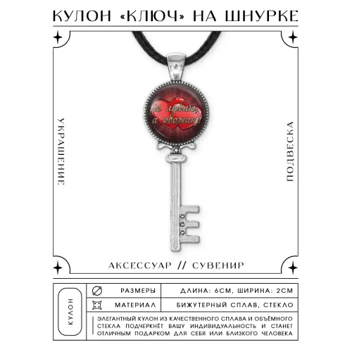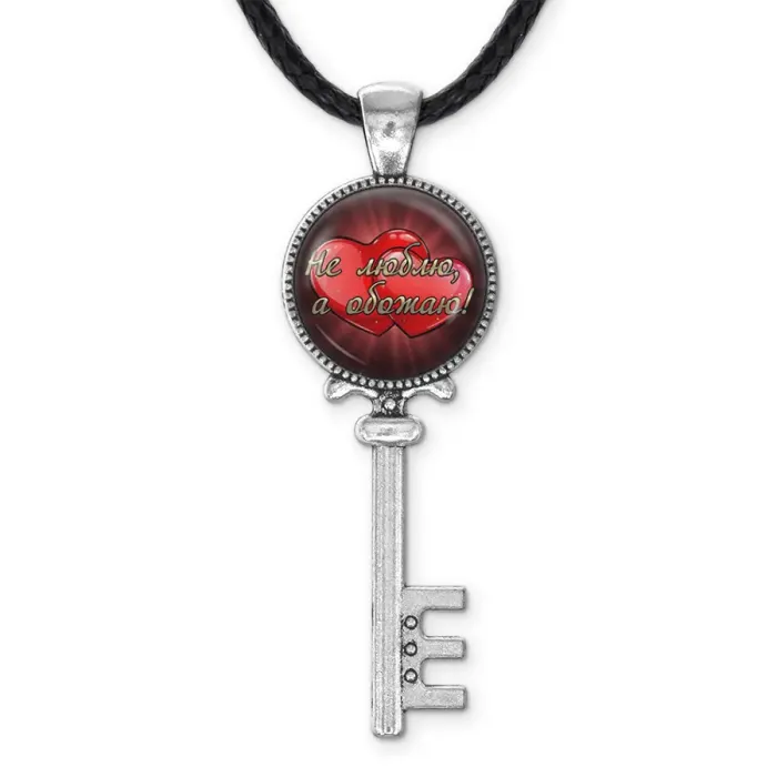 Кулон-ключ из бижутерного сплава с покрытием под серебро и защищённым линзой изображением.