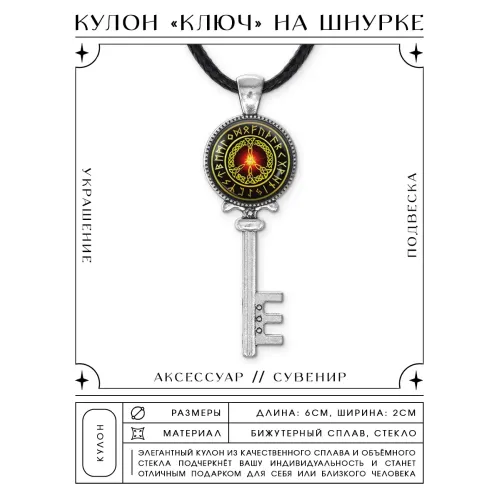 Кулон-ключ Пацифик из бижутерного сплава с покрытием под серебро и защитным стеклянным элементом.