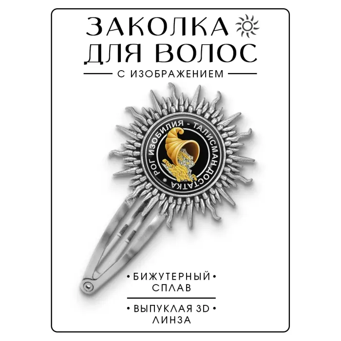 Заколка "Рог изобилия" — это стильный аксессуар, который добавит уникальности любому образу. Изготовленная из бижутерного сплава с покрытием под серебро, она не только привлекает внимание, но и символизирует изобилие и процветание. Основные характеристики: размер заколки составляет 77х45 мм, а диаметр изображения — 25 мм. Защищенное выпуклой стеклянной линзой изображение придает изделию особую выразительность. Упакована в прозрачный пакет для удобства хранения.