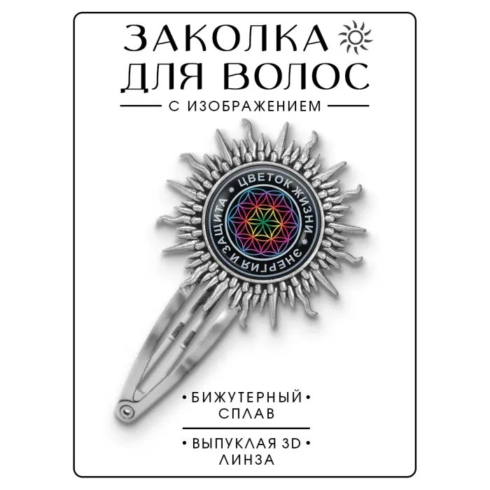 Заколка "Цветок жизни" — это стильный аксессуар, который символизирует гармонию и красоту. Изготовленная из бижутерного сплава с покрытием под серебро, она станет отличным дополнением к любому образу. Основные особенности: