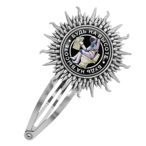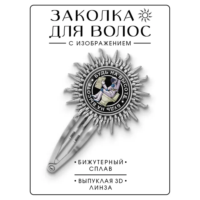 Размеры и комплектация: Размер заколки 77х45 мм, диаметр изображения 25 мм. Упаковка: прозрачный пакет.