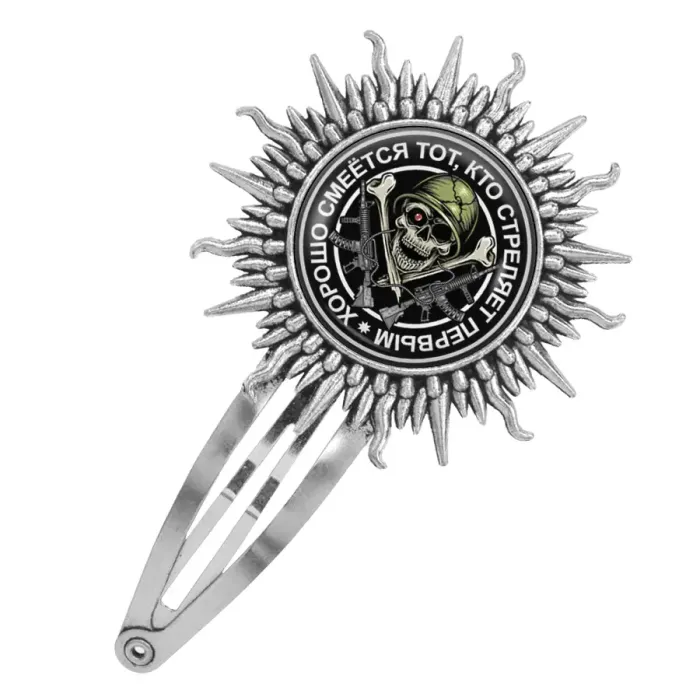 Размеры и комплектация: Размер заколки 77х45 мм, диаметр изображения 25 мм. Упаковка: прозрачный пакет.
