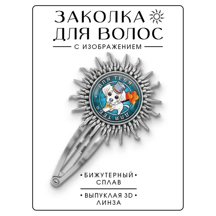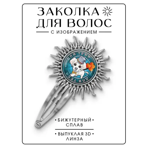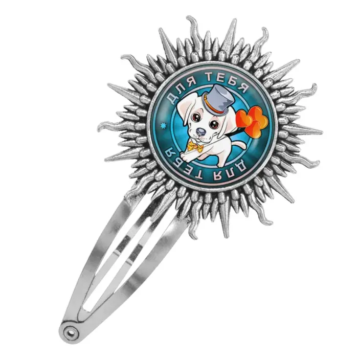 Размеры и комплектация: Размер заколки 77х45 мм, диаметр изображения 25 мм. Упаковка: прозрачный пакет.