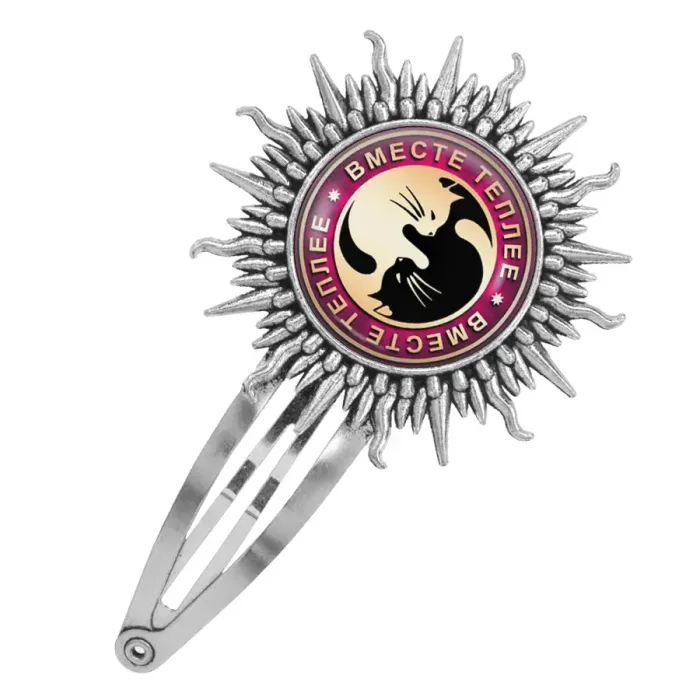 Размеры и комплектация: Размер заколки 77х45 мм, диаметр изображения 25 мм. Упаковка: прозрачный пакет.