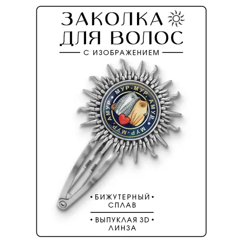 Размеры и комплектация: Размер заколки 77х45 мм, диаметр изображения 25 мм. Упаковка: прозрачный пакет.