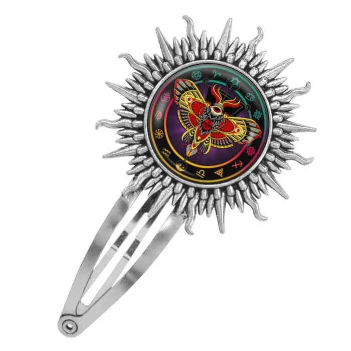 Заколка для волос из бижутерного сплава с изображением мотылька и символикой «Мёртвая голова».