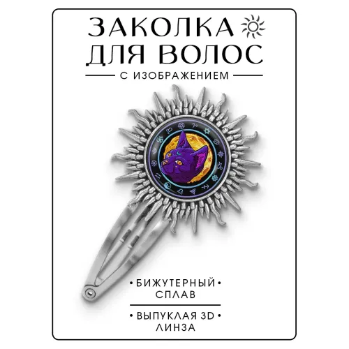 Размеры и комплектация: Размер заколки 77х45 мм, диаметр изображения 25 мм. Упаковка — прозрачный пакет.