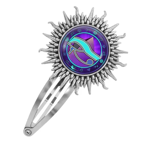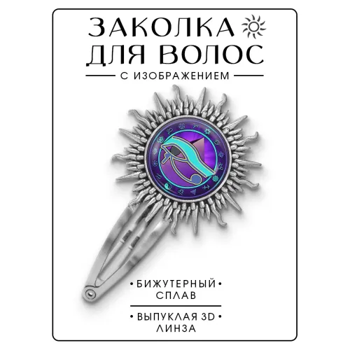 Заколка для волос «Глаз Гора» из бижутерного сплава с изображением под стеклянной линзой.
