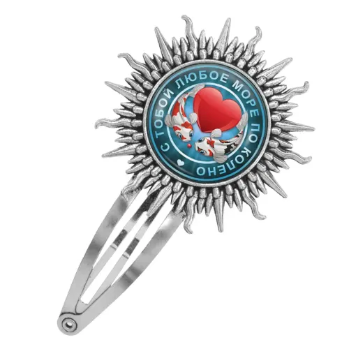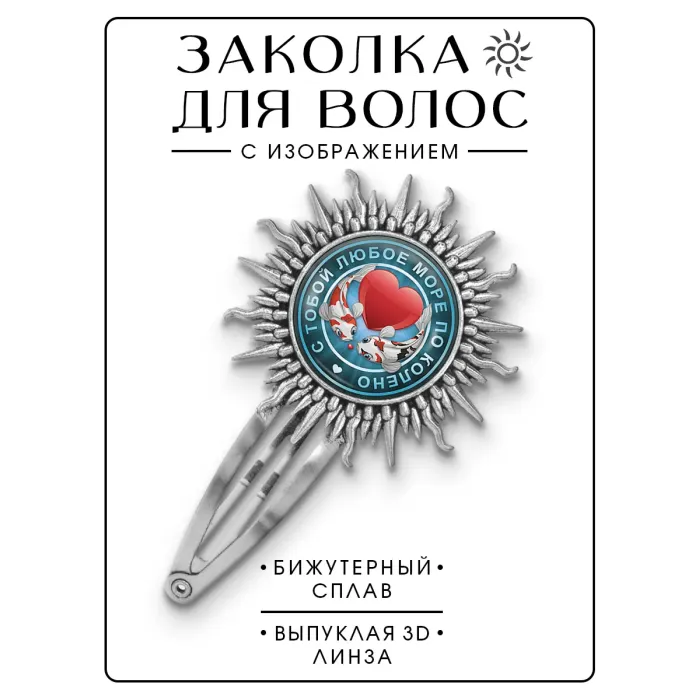 Заколка «С тобой море по колено» — аксессуар из бижутерного сплава с изображением под выпуклой стеклянной линзой.