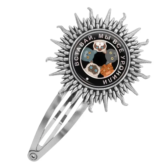 Размеры и комплектация: Размер заколки 77х45 мм, диаметр изображения 25 мм. Упаковка: прозрачный пакет.