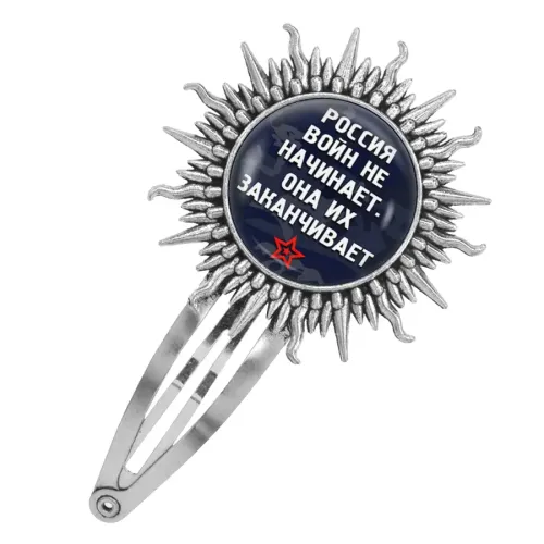 Размеры и комплектация: Размер заколки 77х45 мм, диаметр изображения 25 мм. Упаковка: прозрачный пакет.