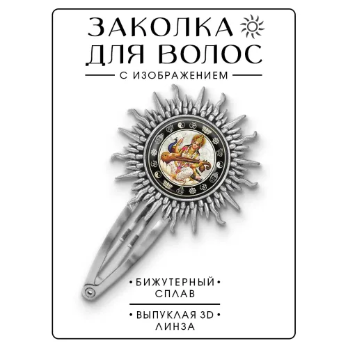 Заколка Сарасвати — это изысканный аксессуар, который придаст образу утончённость и стиль. Изготовленная из бижутерного сплава с покрытием под серебро, она сочетает в себе красоту и долговечность. Размер заколки составляет 77х45 мм, а диаметр изображения — 25 мм. Уникальное изображение защищено выпуклой стеклянной линзой, что добавляет изделию особую выразительность. Заколка упакована в прозрачный пакет, что делает её отличным вариантом для подарка или личного использования.