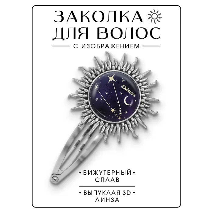 Заколка "Знаки Зодиака - Телец" — это стильный аксессуар, который подчеркнет индивидуальность и добавит изюминку в образ. Изготовленная из бижутерного сплава с покрытием под серебро, она не только привлекает внимание, но и символизирует устойчивость и практичность знака Тельца.