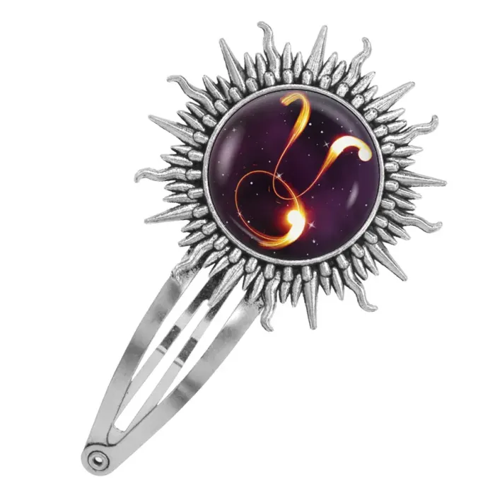 Заколка с символом знака зодиака Телец. Изготовлена из бижутерного сплава с покрытием под серебро, изображение защищено выпуклой стеклянной линзой.