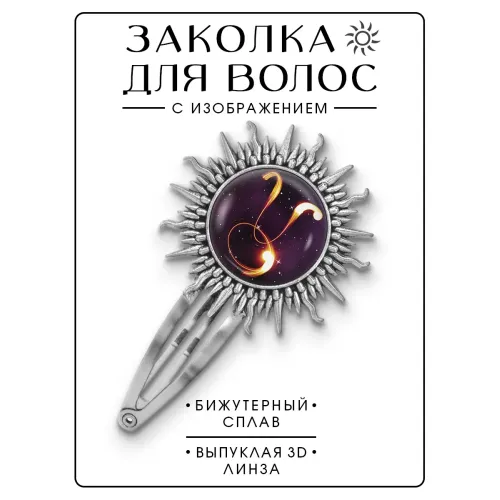 Размеры и комплектация: Размер заколки 77х45 мм, диаметр изображения 25 мм. Упаковка — прозрачный пакет.