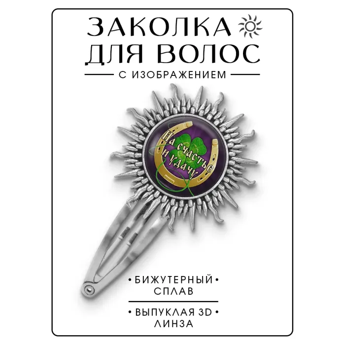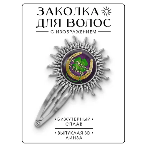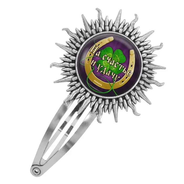 Размеры и комплектация: Размер заколки: 77х45 мм. Диаметр изображения: 25 мм. Упаковка: прозрачный пакет.