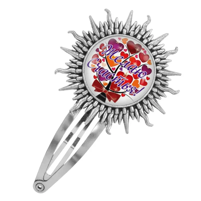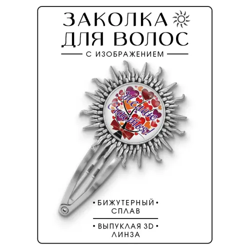 Размеры и комплектация: Размер заколки 77х45 мм, диаметр изображения 25 мм. Упаковка: прозрачный пакет.