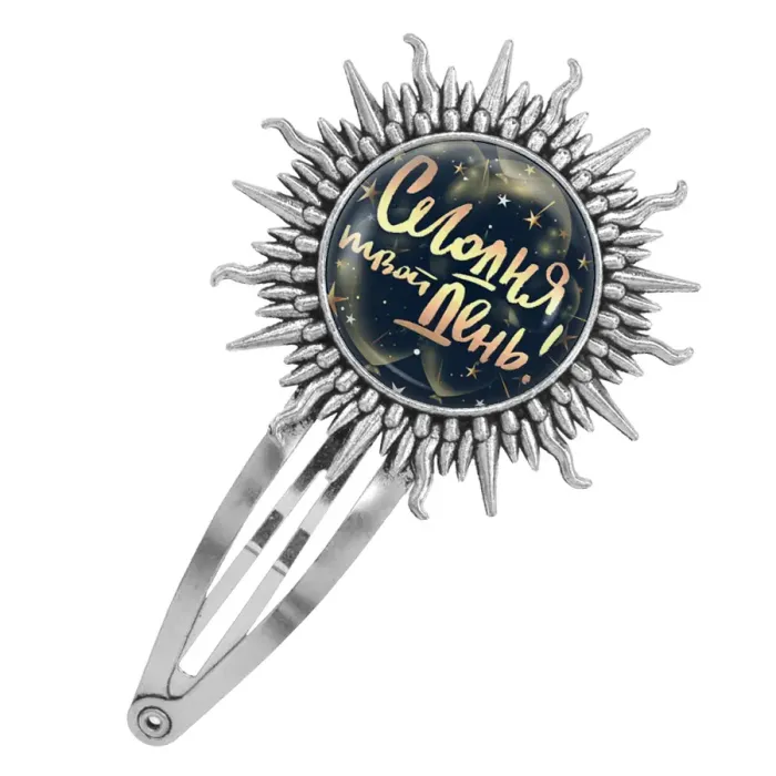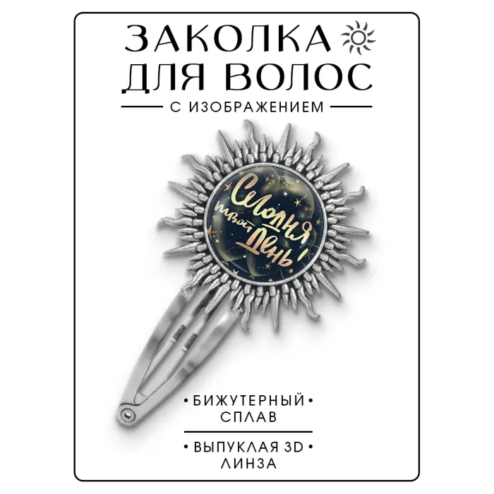 Размеры и комплектация: Размер заколки 77х45 мм, диаметр изображения 25 мм. Упаковка: прозрачный пакет.