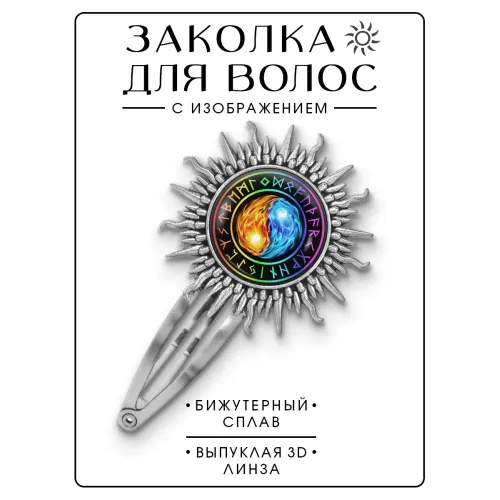 Размеры и комплектация: Размер заколки: 77х45 мм, диаметр изображения: 25 мм. Упаковка: прозрачный пакет.