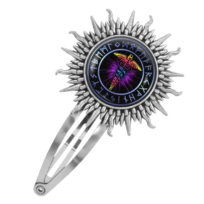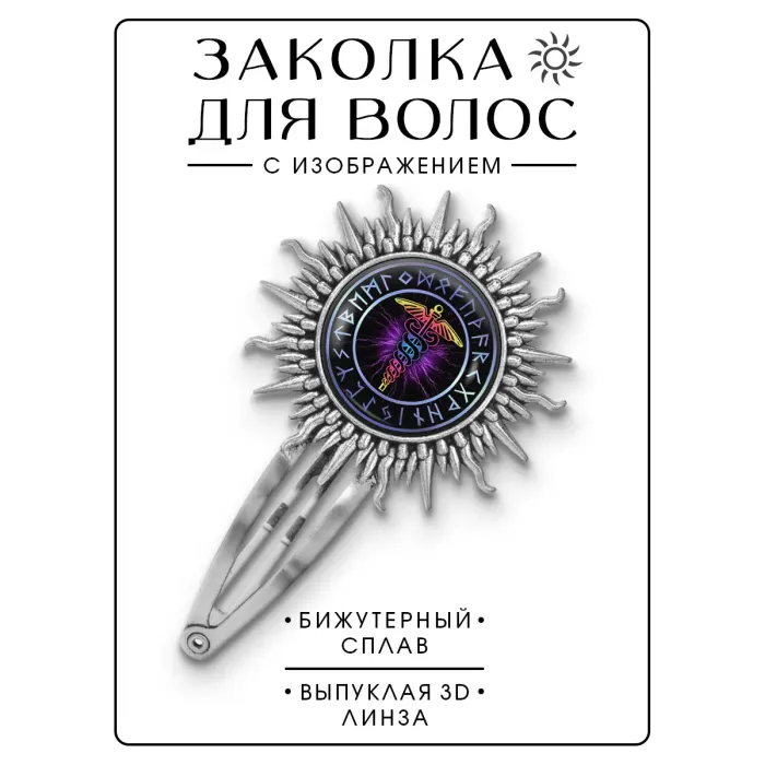 Заколка Кадуцей — это стильный аксессуар, который объединяет в себе элегантность и символику. Изготовленная из бижутерного сплава с покрытием под серебро, она станет великолепным дополнением к любому образу. Основные характеристики: