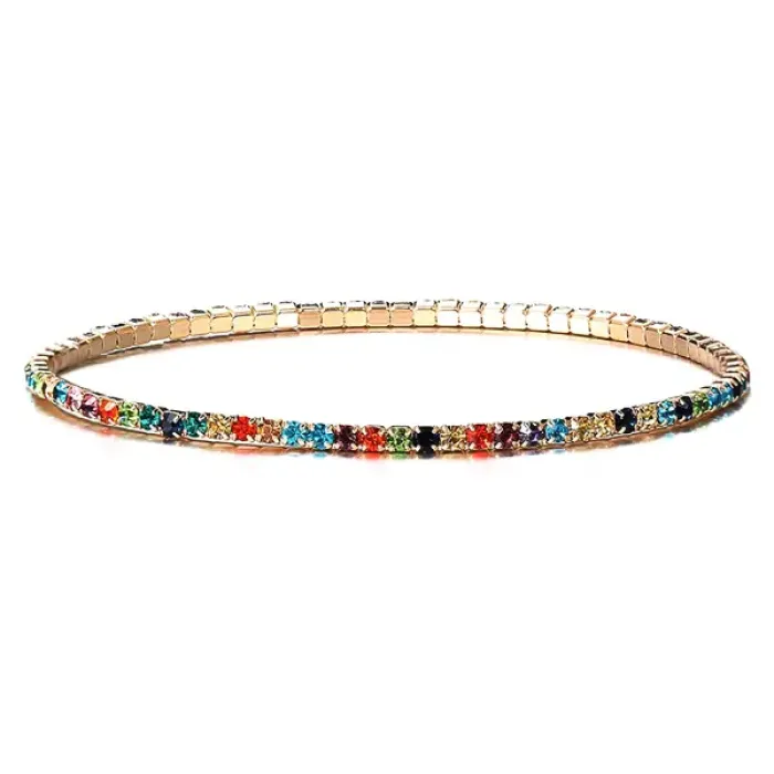 Стрейч-браслет с разноцветными стразами, толщиной 1,5 мм.