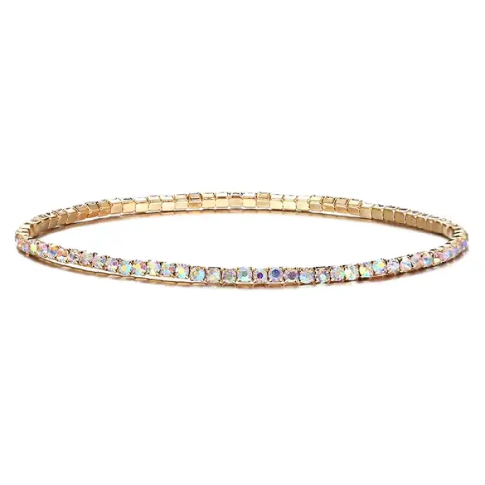 Стрейч-браслет из металла с покрытием под золото и стразами.