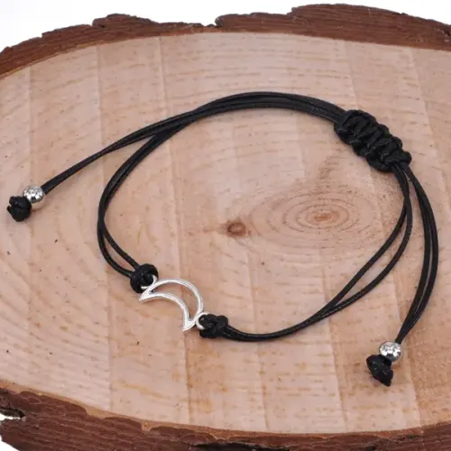 Браслет из прочной нити и бижутерного сплава с коннектором в форме месяца.