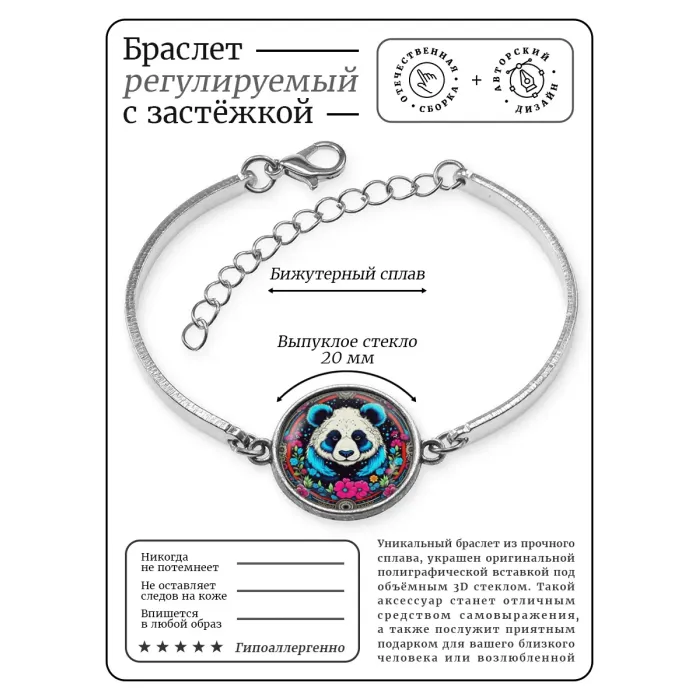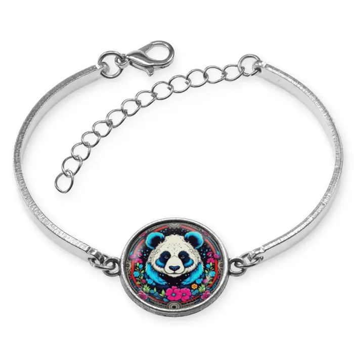 Бижутерный браслет-сувенир с декоративным элементом в виде панды и цветов.