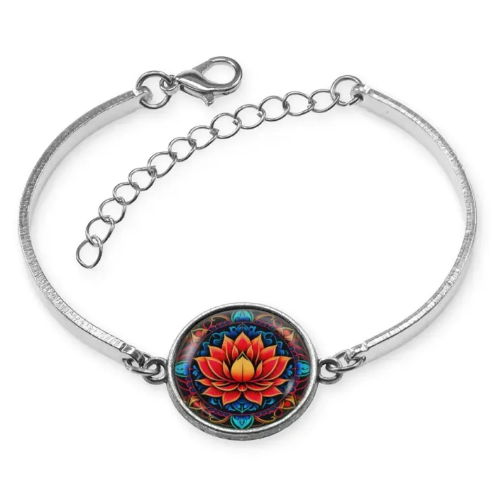 Браслет из бижутерного сплава с регулируемой застёжкой. В центре расположено изображение диаметром 18 мм под выпуклой стеклянной линзой.