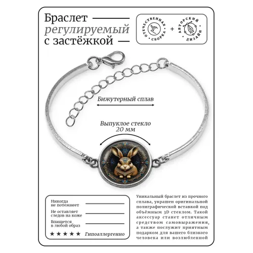 Металлический браслет с декоративным элементом в виде зайца.